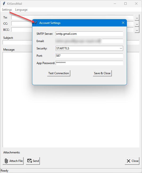 - Launch the app and setup the SMTP server