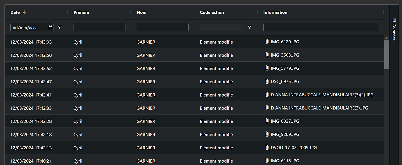 L’historique des événements vous permet de consulter toutes les actions faites dans votre système Kitview Web. Pour vous aider à chercher et trouver, vous pouvez trier l’information par n’importe quelle colonne.
