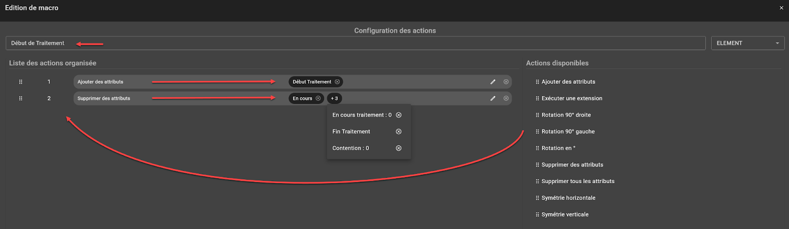 Par exemple, nous allons créer une macro qui s’appelle “Début de Traitement” et qui devra faire les actions suivantes :