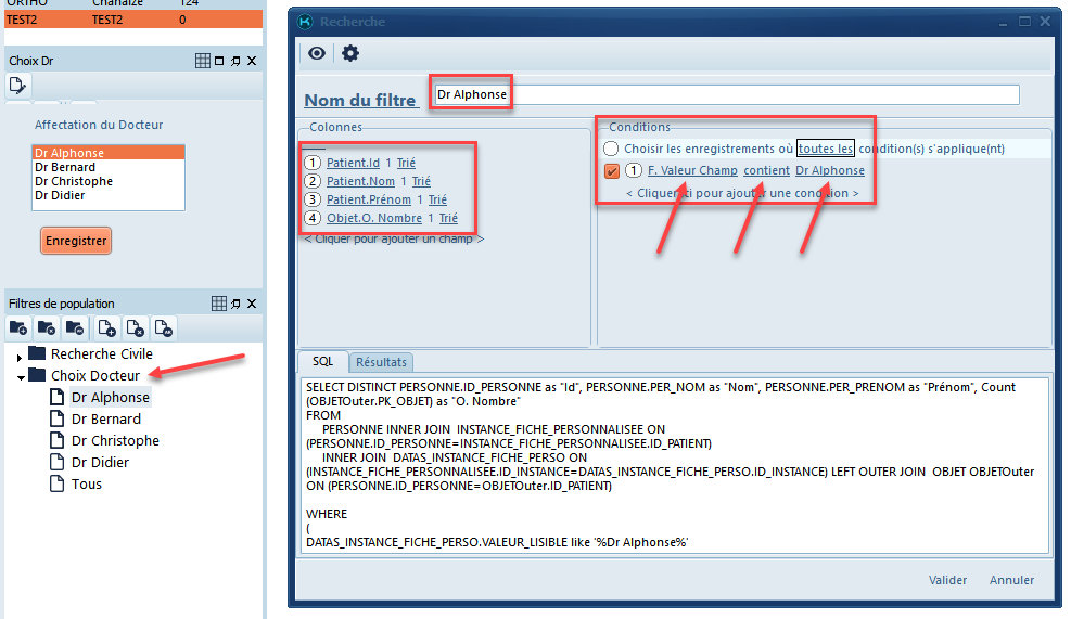 Pour créer un filtre patient par médecin, nous devons suivre plusieurs étapes consécutives.