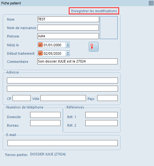 Il vous suffira de modifier les champs de votre patient puis de cliquer sur "Enregistrer les mofications".