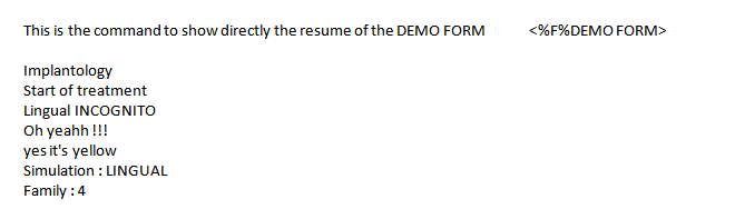 Folosind doar comanda, documentul Word ne va afișa rezumatul formularului fără niciun format:
